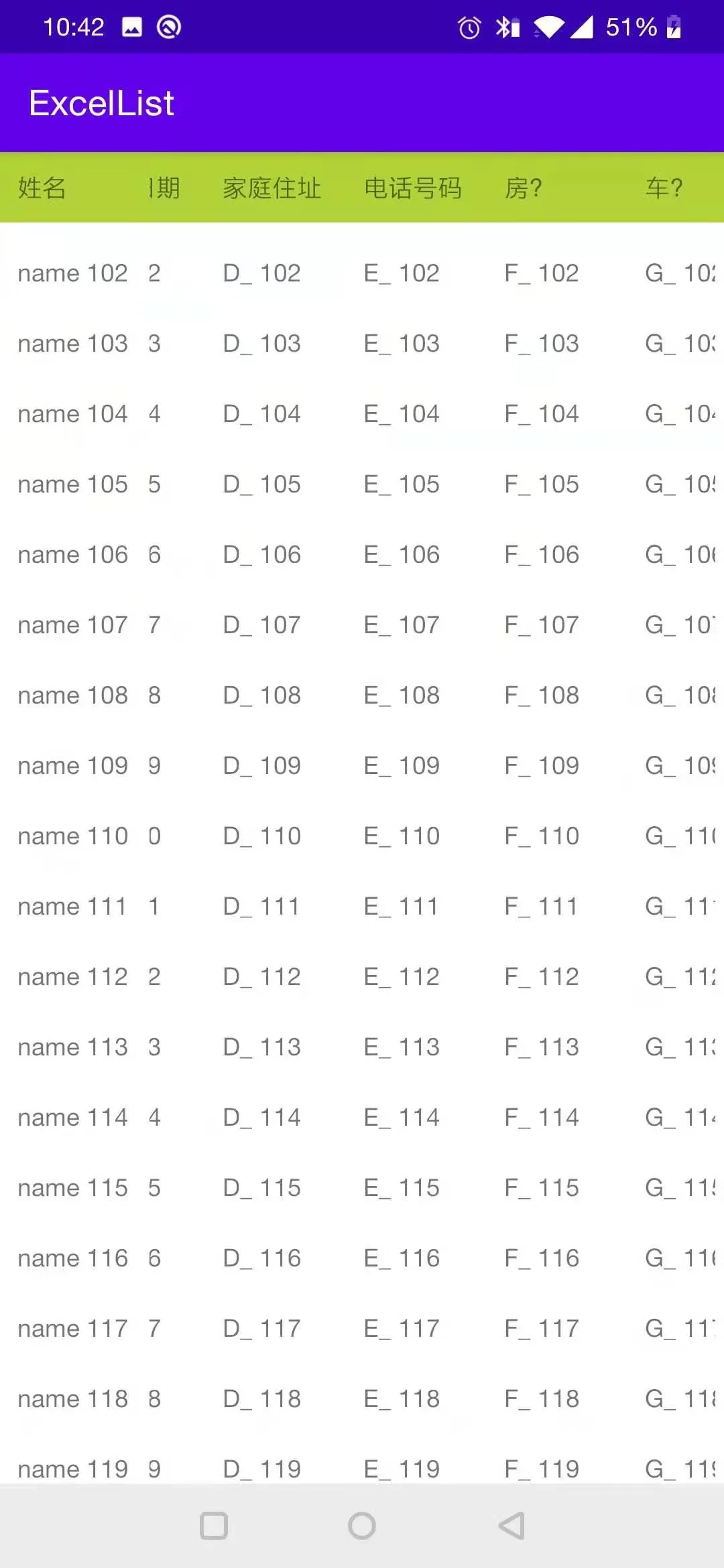 完成rv设置,adapter设置,实现出来的效果是 纵向滑动没问题,横向滑动则为 每个item各自为营,单独的都可以滑动,缺少了Excel表格的 “联动” 效果。